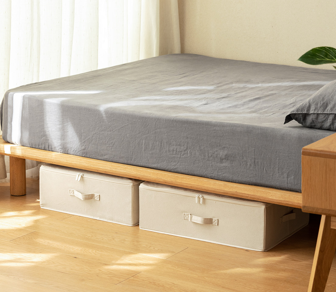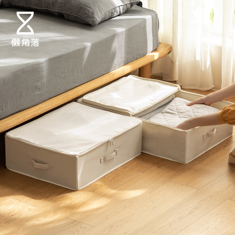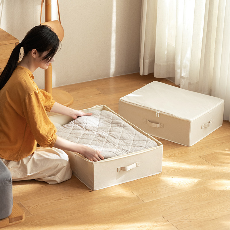 ファスナー式の蓋で中身をしっかり保護し、季節外の布団や洋服の整理整頓に便利です。