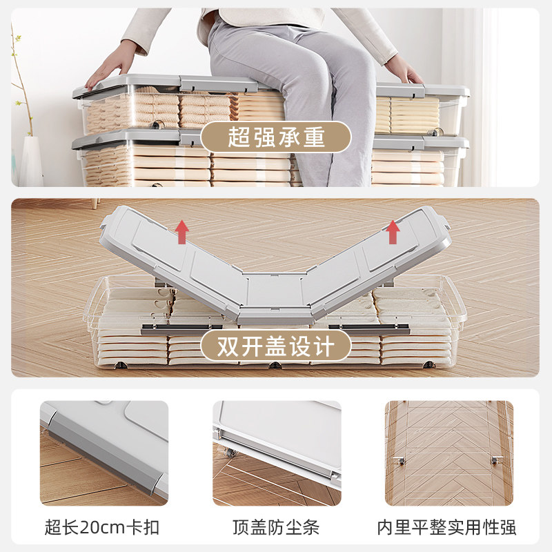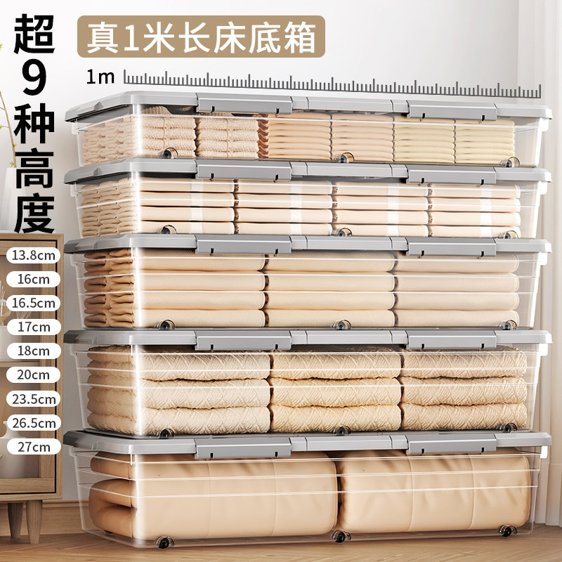 ベッド 下 収納に最適な薄型設計の衣装ケースです。 超9種類の高さから選べる設計で、お持ちのベッドに合わせて自由に調整できます。 1メートルのワイドサイズで衣類やタオル、寝具などをたっぷり収納可能。 透明な蓋付きで中身が一目で確認でき、キャスター付きで出し入れもスムーズです。 分類ラベル付きで整理整頓がしやすく、寝室空間を有効活用できる収納ボックスです。