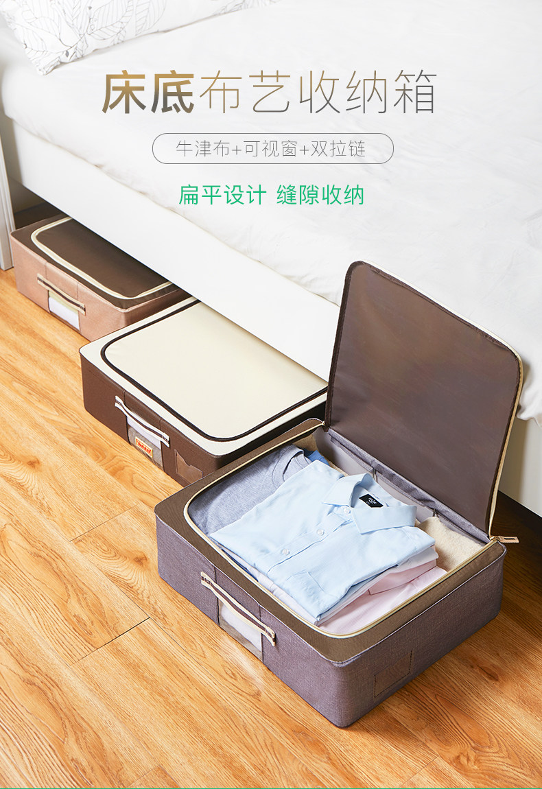 ベッド下の空間を有効活用できる衣装ケースです。 蓋付きで埃を防ぎながら衣類やおもちゃ、小物類をすっきり整理整頓できます。 布製の柔らかい素材で持ち運びやすく、取っ手付きで出し入れも簡単です。 大容量設計で季節外れの衣類や寝具、子供用品など様々なアイテムを収納可能です。 ベッド下収納に最適な高さで、限られた空間を最大限に活用できる便利な衣装ケースです。